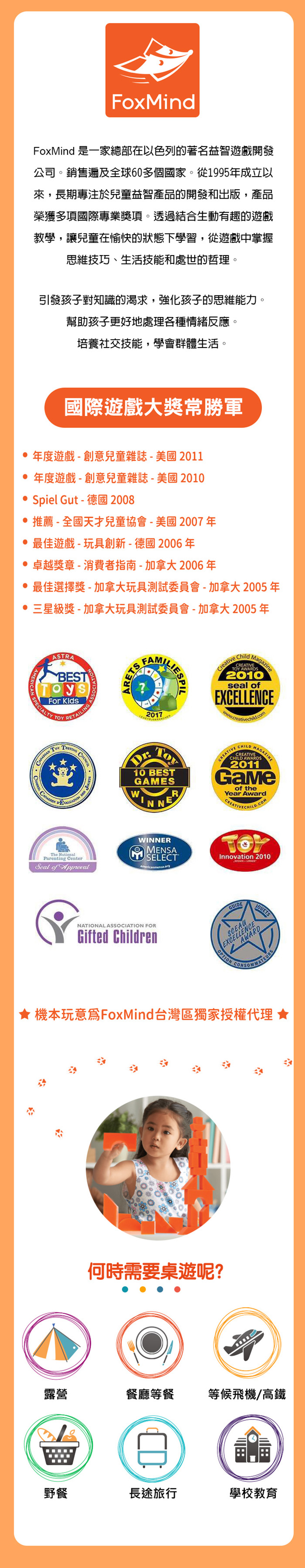 《機本玩意OBOi 空間邏輯桌遊-建構建築師(FoxMind)》是一款專為7歲以上玩家設計的桌遊,旨在透過簡單的建構活動提升玩家的專注力、耐性以及手腦協調能力。遊戲過程中,玩家依照每頁題目下方提示的積木構件,構築出與顯示圖像相同的建築物,從而學習基本的建築學概念。