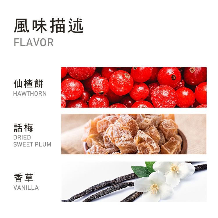 【參考風味】仙楂餅、話梅、香草、烏梅、黑糖、小紅莓
