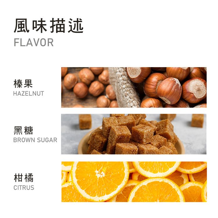 【參考風味】榛果、黑糖、柑橘