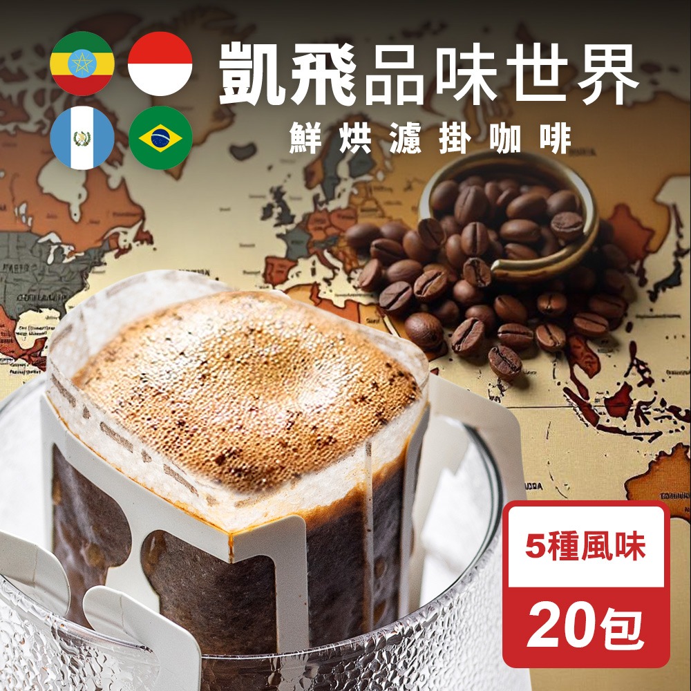 CoFeeL凱飛 鮮烘品味世界濾掛咖啡/耳掛咖啡包10g(5種風味x20包)