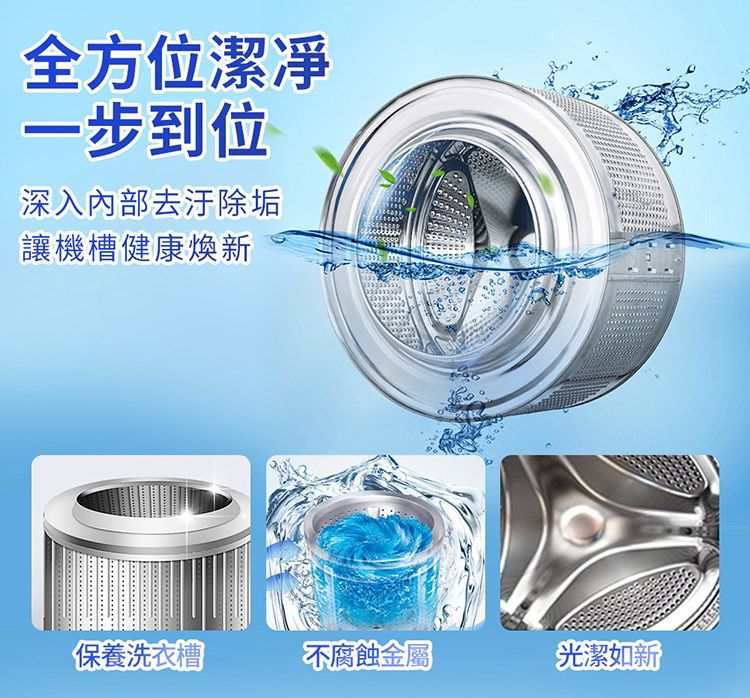適用於洗衣機槽清除髒汙,使水槽維持潔淨無異味。