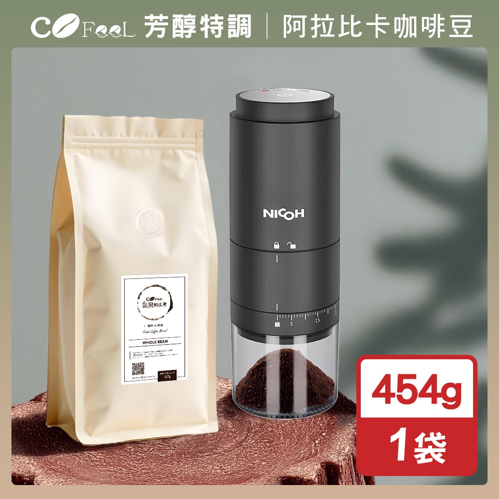 CoFeeL 凱飛現烘阿拉比卡咖啡豆一磅+NICOH電動陶瓷錐刀磨豆機