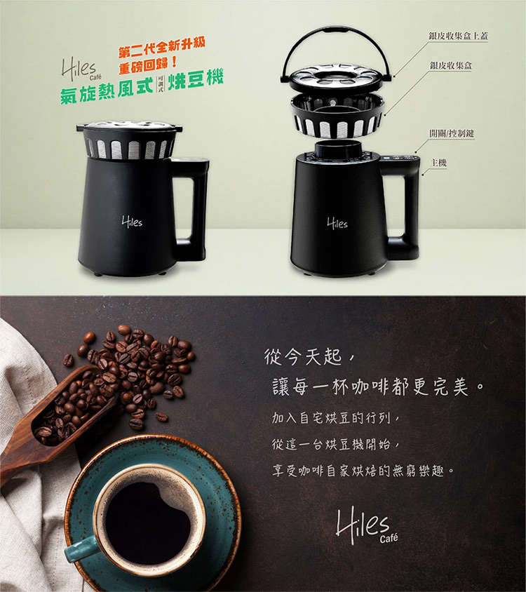 Hiles 第二代氣旋熱風家用烘豆機(溫度/時間可調式)HE-HRT2(送200克咖啡生豆)