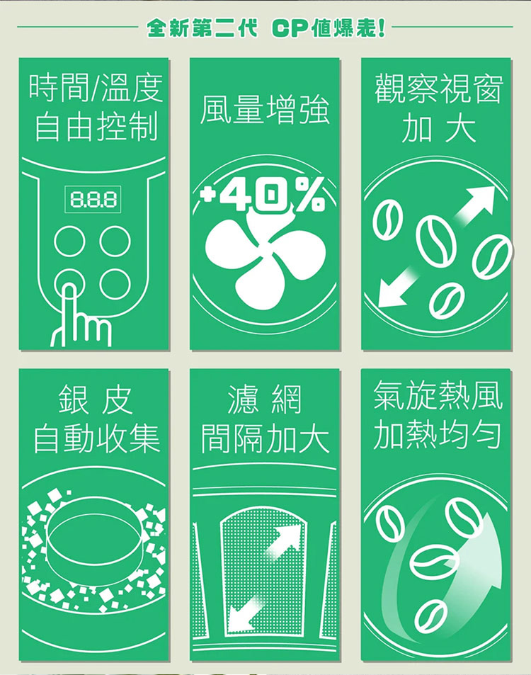 風力提升40%、操作直觀、控制精準,適合咖啡新手與愛好者,帶您輕鬆探索咖啡烘焙的樂趣。