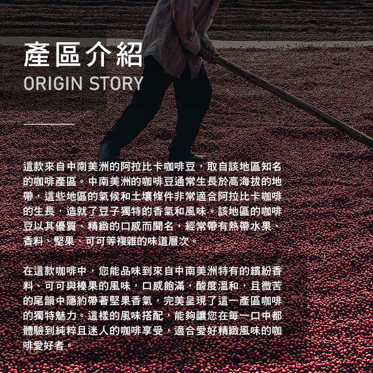 來自中南美洲的優質阿拉比卡咖啡豆,散發繽紛的香料、可可與榛果的風味。入口後口感飽滿,酸度溫和,以微微的苦韻收尾,並帶有堅果的香氣,為您帶來純粹而迷人的咖啡享受。
