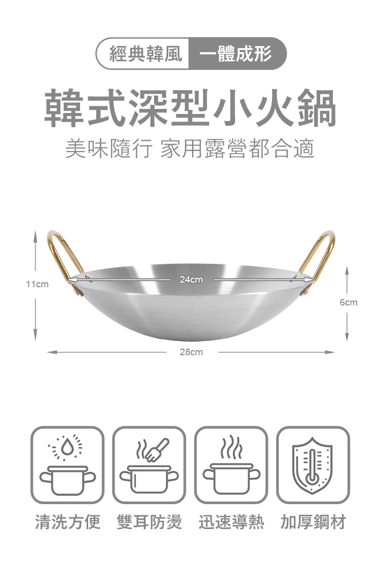 Artist精選 韓式304不鏽鋼深型小火鍋24cm(單人鍋/涮涮鍋/湯鍋)