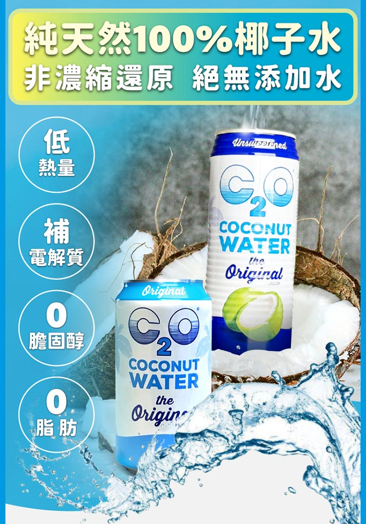 1.美國品牌天然椰子水C2O,富含天然電解質
