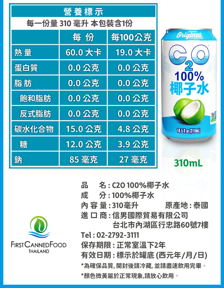 1.天然椰子水的顏色會隨採收季節而不同,請安心飲用。
