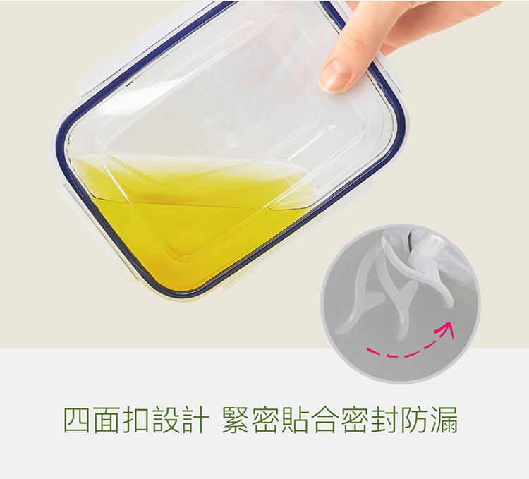 ◆四面扣密封,緊密貼合,鎖住新鮮、防漏不易灑