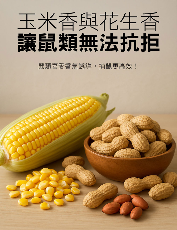 這款神捕超黏力黏鼠板,擁有雙重誘餌氣味——玉米香與花生香,能有效吸引鼠類,讓牠們無法抗拒!