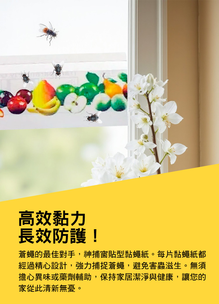 強力黏性:高效捕捉各類飛蟲,長效防護,讓飛蟲無處可逃。
