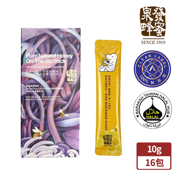 百年老店泉發蜂蜜 特選野蜂蜜隨手包10gx16包入(HALAL清真認證)