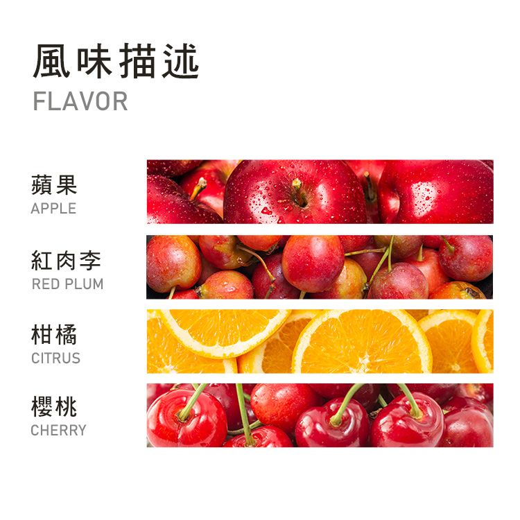 蘋果、紅肉李、柑橘、櫻桃