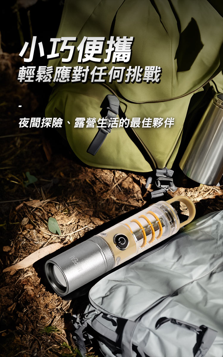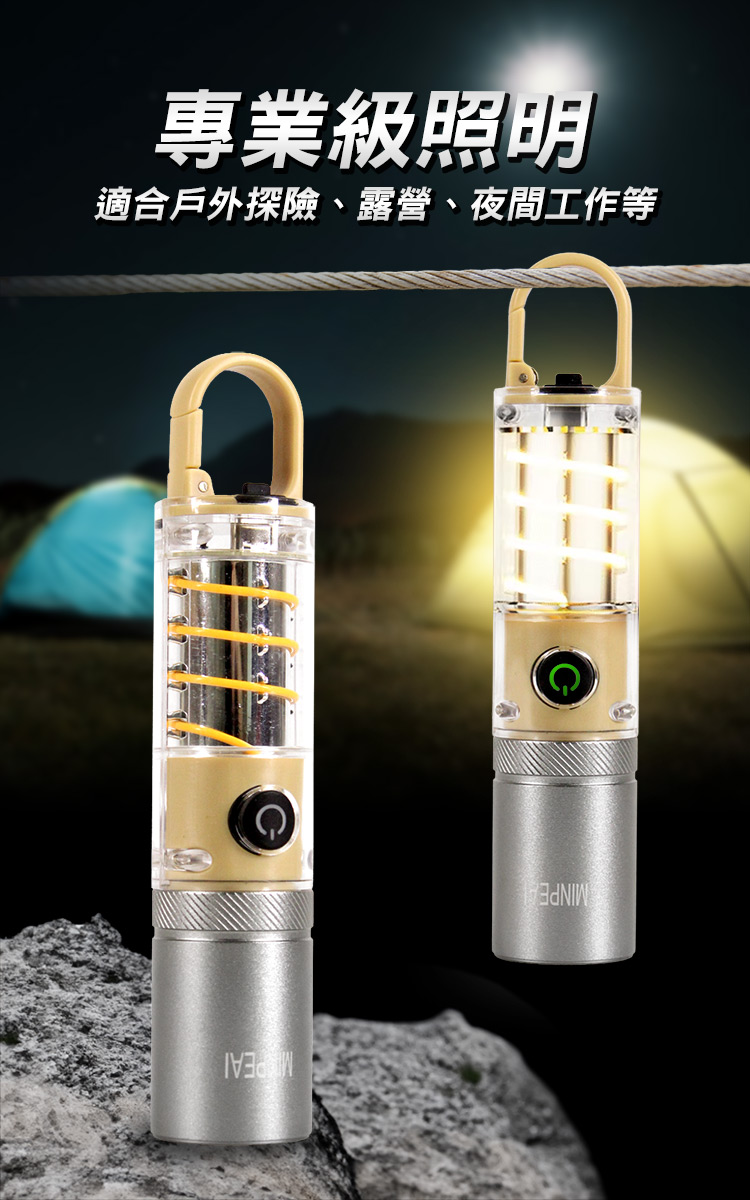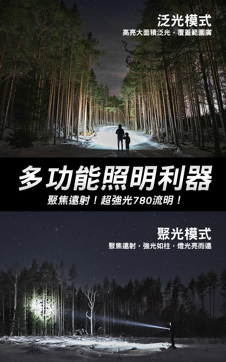 暗夜極光 15W LED 多功能手電筒/露營氛圍燈2入(TYPE-C/充電式/聚焦遠射/五段調光)