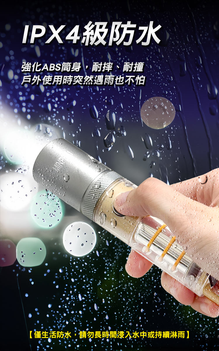 ◆防水等級IPX4,戶外使用時突然遇雨也不怕。