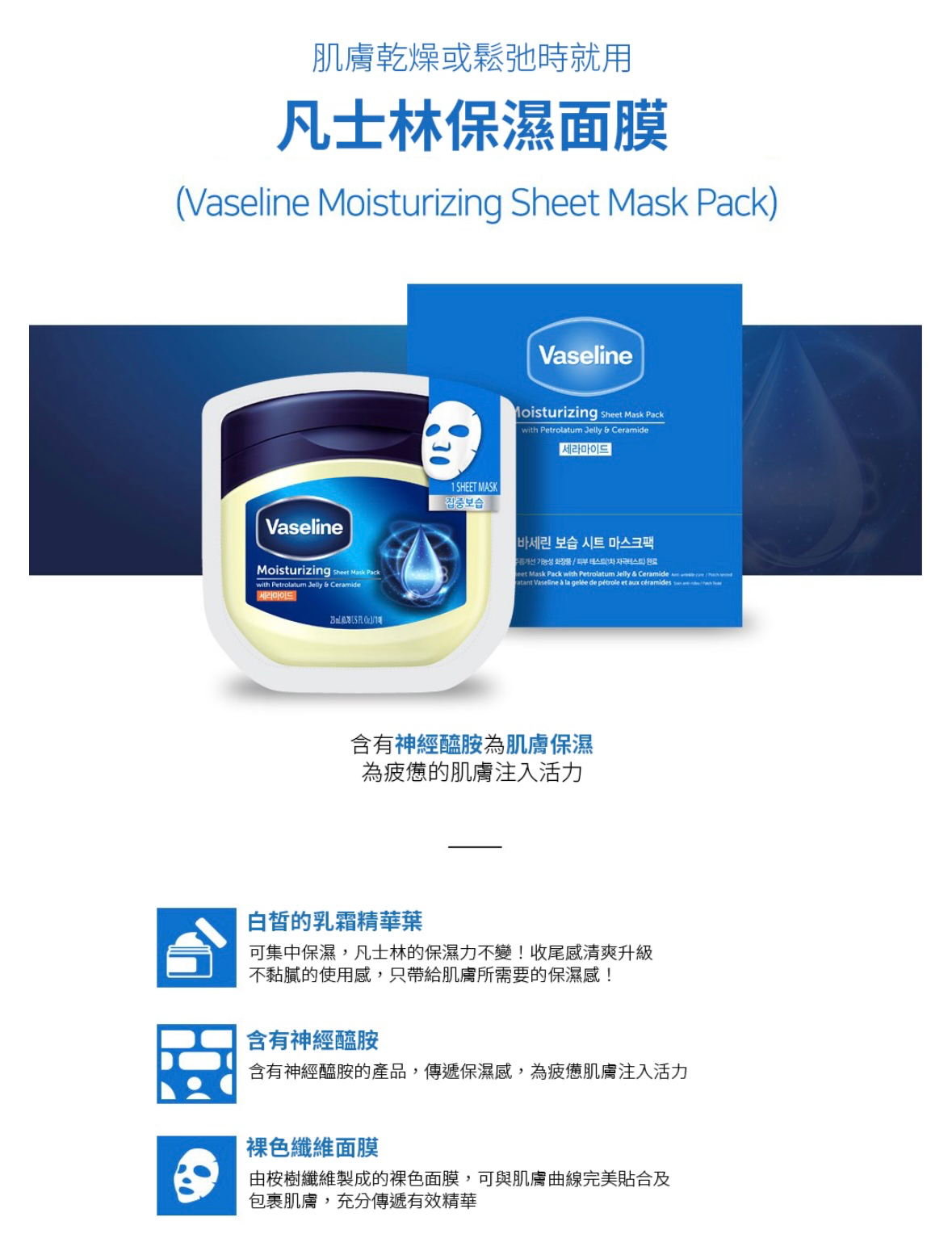 🇰🇷韓國代購 凡士林超保濕面膜 神經醯胺|玻尿酸|羥基積雪草苷