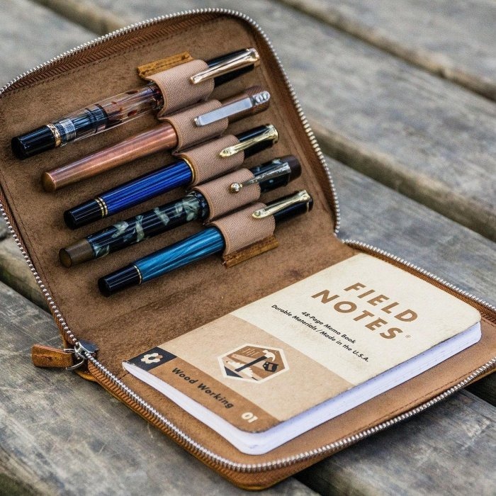 「Galen Leather Co.」是一家家族企業,總部位於土耳其伊斯坦布爾。標榜100%手工製作,精心設計的手工皮具系列在過去幾年風靡文具界。每個產品都來自於實用的設計和有意義的構造,從而生產既實用又美觀的東西。材質上使用100%植鞣牛皮(瘋馬皮也稱瘋牛皮),全粒面皮革,使用打蠟聚酰胺線手工縫製,邊緣經過斜切、打蠟和拋光處理,打造完美外觀,內含5個筆槽,可容納長度約14.5cm的筆記具,同時可以完美收納A6尺寸的合適筆記本。