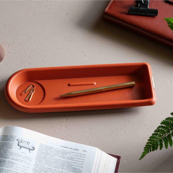 「物外設計/ystudio」以台灣的建築文化為概念,結合桌上道具,將收納盤打造成桌面上的微型建築。2款經典色,包含磚紅和柱灰,其調性凝聚了現代建築的獨特風貌,勾勒出建築與工藝的共融之美。產品採一體成型之設計,盤緣上的黃銅標誌呼應品牌經典黃銅元素;因應各種置物需求推出不同尺寸,可容納文具、飾品等日常用品。透過別樹一幟的外型設計,讓收納盤也能成為展現個人風格的一道生活風景。「磚紅色/Brick Red」復古溫潤,出現在古老建築物的外牆或城市的街道上,賦予了建築厚重的歷史感和磅礡的氣息。「柱灰色/Colonnade Gray」穩重典雅,用於建築物的支柱、柱子或者樑柱上,營造出沉穩、內斂的印象。產品使用台灣環保素食皮革製作,通過歐盟REACH檢測,使用材料與生產過程中落實動物友善、減少產製資源的浪費,薄厚適中富有彈性,同時具防水性及良好的耐刮耐磨特性,堅固且耐用。