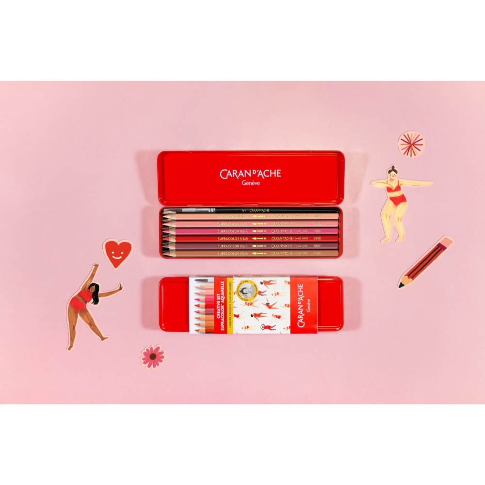 「卡達/CARAN D’ACHE」攜手英國插畫家暨品牌大使Nina Cosford (妮娜·科斯福德),推出充滿創意與活力的特別版系列。 這位以生動人物與歡快色彩聞名的藝術家,為本系列注入多元且風格鮮明的當代藝術精神。Supracolor™ 水溶性色鉛筆組,由Nina Cosford精心挑選12個顏色,用以表現多樣的膚色之美。套裝內附QR Code,可連結至CARAN D’ACHE創意課程平台的專屬線上課程。