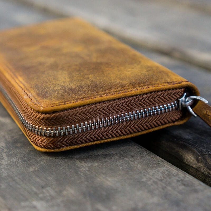 材質: 100%植鞣牛皮(瘋馬皮也稱瘋牛皮)、YKK拉鍊