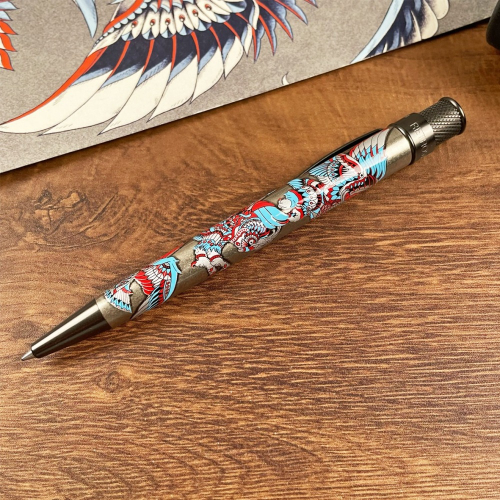 Retro 51和南加州藝術工作室BIOWORKZ於2017年推出的最新力作!也是旗下「藝術家系列 (Artist Series)」的第一彈!設計師Ben Kwok出生於台灣,在洛杉磯長大,藝術一直是他人生中重要的一環,喜歡線條豐富和描述細節的藝術品,而且多半用生物的型態呈現,本款式即以其創作的貓頭鷹圖騰烙印在筆身上,質感高雅,宛如活生生的畫面印入眼簾。限定限量發行,筆頭有限量編號(圖三),喜歡的朋友,不要錯過喔!筆頭、筆蓋與筆夾採用一貫的復古刷色,營造整體的質感。出芯方式使用旋轉式出芯,筆芯採用派克型筆芯,也可以視使用需求,替換成原子筆芯。