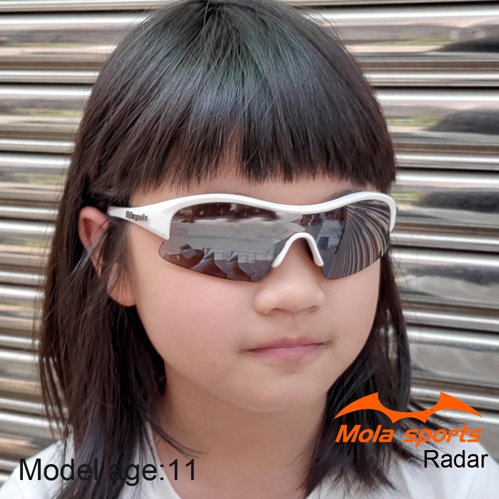 兒童太陽眼鏡 墨鏡 大童 運動 8-14歲 男女 UV400 白框 茶片 安全鏡片 Radar-wb Mola摩拉