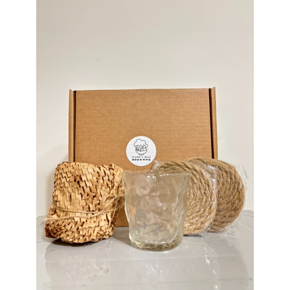 霧面冰川水杯(高9、口徑9cm、300ml)與日式經典亞麻杯墊各2入。