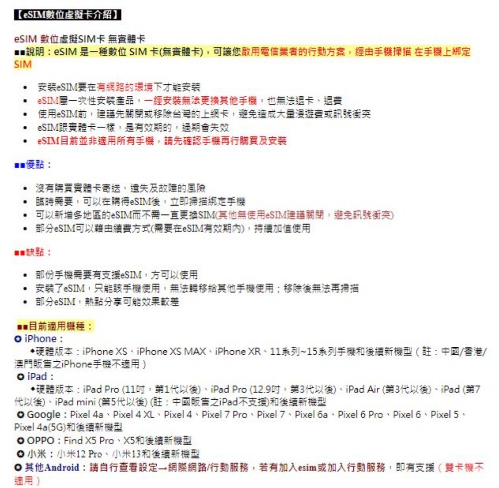 ◆◆◆ (此為eSIM數位卡,即非體實虛擬卡)◆◆◆