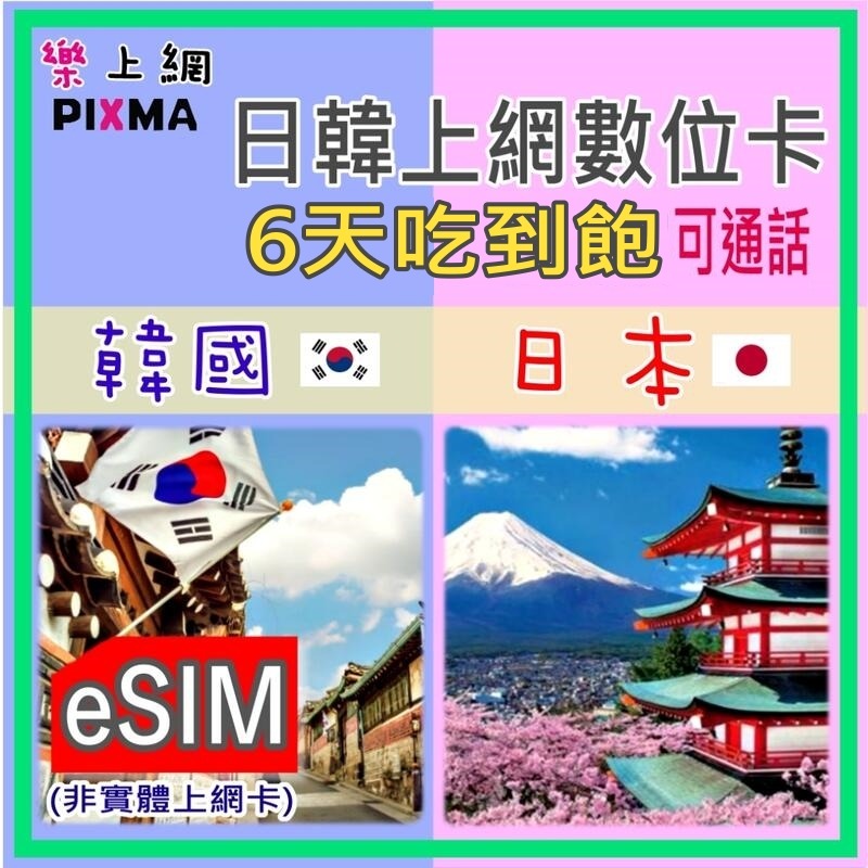 🌸 日本韓國6天18GB(3GB/天.量到降速)_300元
