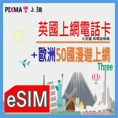 英國上網+歐洲漫遊上網eSIM義大利 法國 西班牙 瑞士 冰島 挪威 5G/4G SIM可熱點