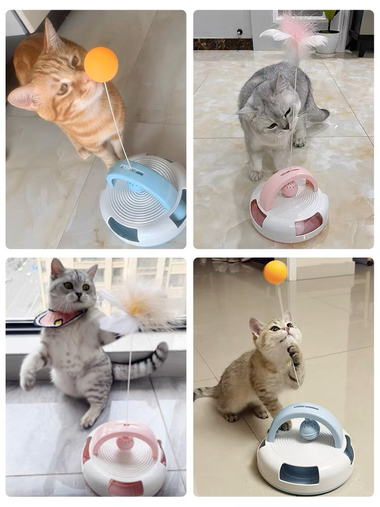 🔥在台現貨.附發票.快速出貨🔥貓咪 搖擺兵乓球羽毛玩具 貓在家自嗨玩具貓羽毛玩具 逗貓盤 逗貓玩具