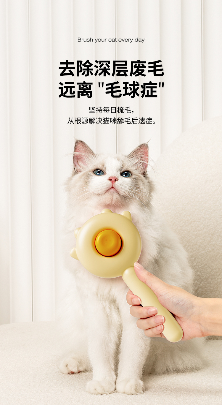🔥在台現貨.快速出貨🔥寵物梳子 貓餅梳 寵物去浮毛梳子 向日葵造型 一鍵清毛 按摩梳 自動脫毛 不鏽鋼針梳