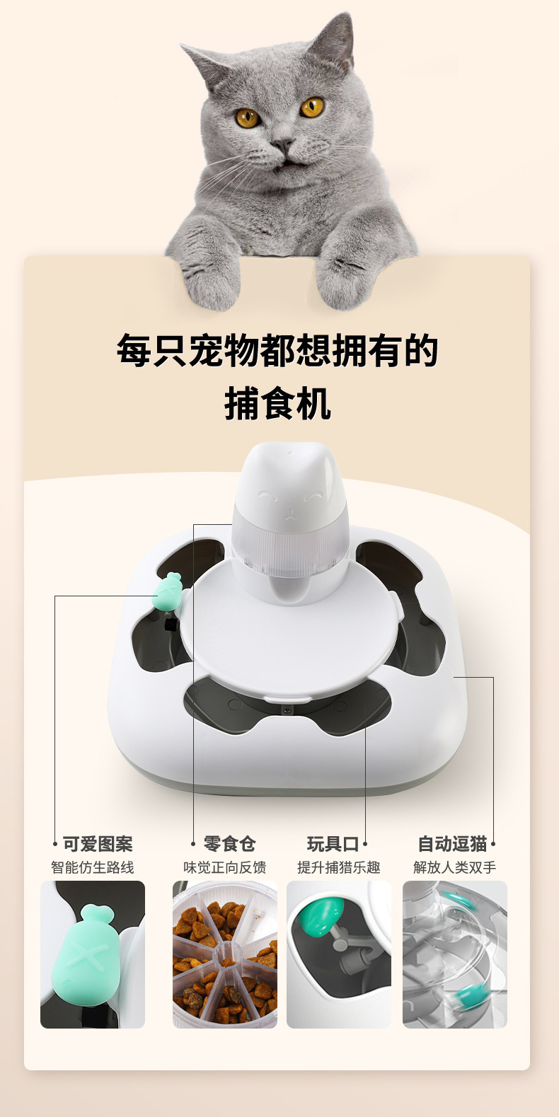⭕當主子抓到小蟲後,機器的零食艙會自動落下零食