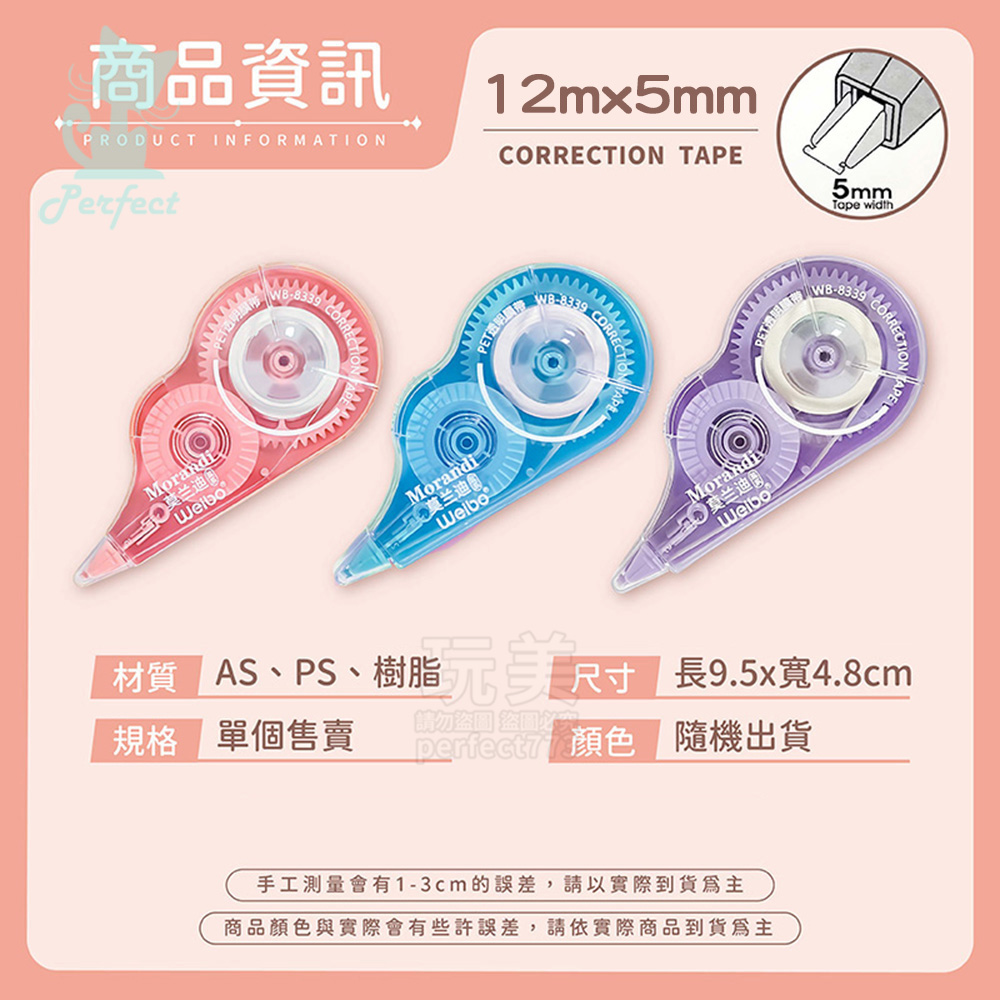 修正帶 立可帶 利可帶 塗改帶 改正帶 滾輪修正內帶 1組3入 錯字塗改 修正筆記 長度600cm 玩美 77169