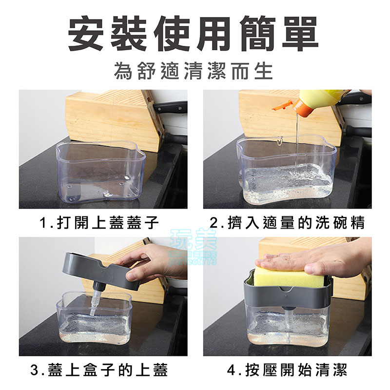皂液盒 洗碗精盒 洗碗精按壓盒 菜瓜布盒 菜瓜布收納 洗碗精收納 廚房收納 洗碗精容器 廚房用品 玩美 77399