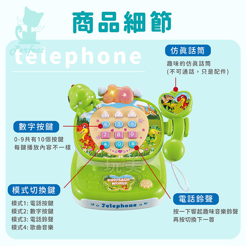 電話玩具 電話機 恐龍造型 恐龍電話 寶寶電話 聲光玩具 燈光玩具 兒童玩具 立體恐龍 幼兒玩具 玩美 771605