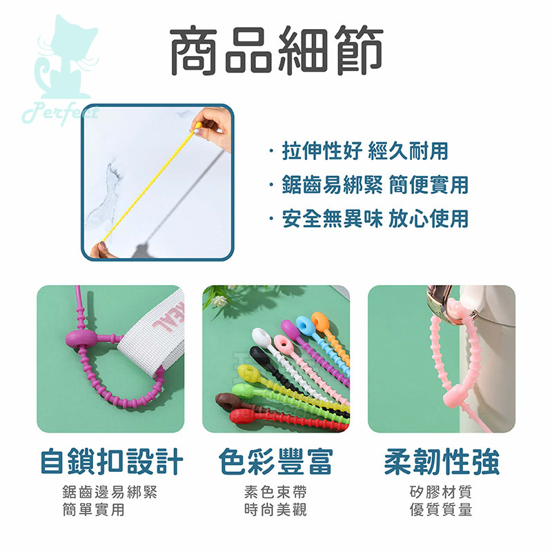 活動束帶 矽膠束帶 束線帶 蝌蚪束帶 理線帶 束帶 彩色束帶 收納束帶 整線帶 綑綁帶 可重複使用 玩美 771660