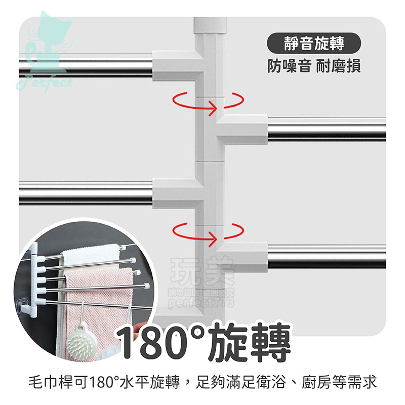浴室毛巾架 毛巾掛架 抹布掛架 壁掛毛巾架 旋轉抹布架 浴室掛架 毛巾桿 毛巾收納架 免打孔 玩美 771663