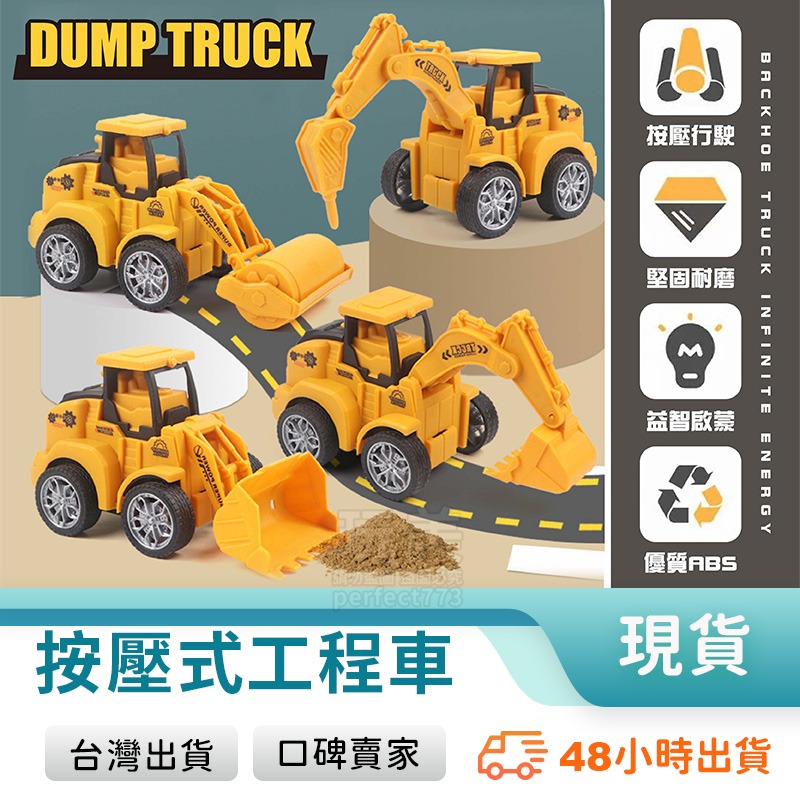 按壓小車 工程車玩具 挖土機玩具 按壓迴力車 汽車玩具 玩具車 兒童玩具 回力挖土機 回力推土機 玩美 771574