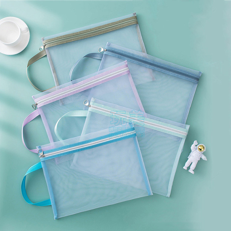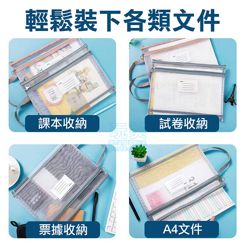 紗網手提袋 網紗手提袋 補習袋 A4資料袋 文件袋 拉鍊袋 文具袋 書本收納袋 文件收納袋 功課袋 玩美 771332