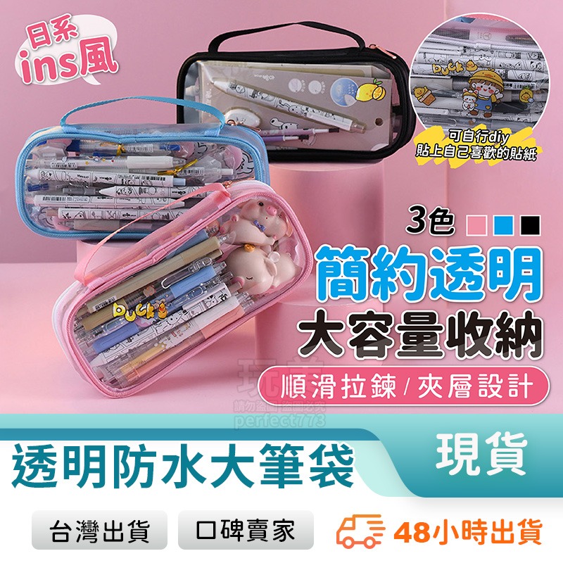 透明大容量筆袋 筆袋 鉛筆盒 透明筆袋 透明鉛筆盒 可視鉛筆袋 韓系筆袋 文具 鉛筆盒大容量 大容量 玩美 771339