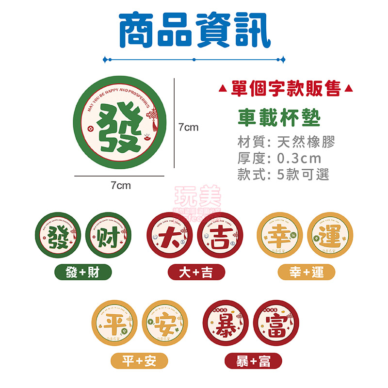杯墊 吸水杯墊 印章墊 布杯墊 汽車杯墊 車用杯墊 軟杯墊 防水杯墊 造型杯墊 開運杯墊 可愛杯墊 玩美 771397