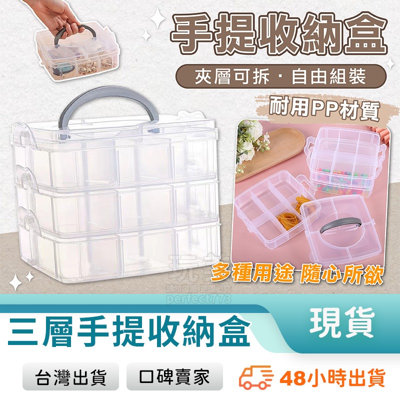 收納盒 手提三層收納盒 三層收納盒 貼紙收納盒 汽車收納盒 透明收納盒 工具收納盒 玩具收納盒 玩美 771293