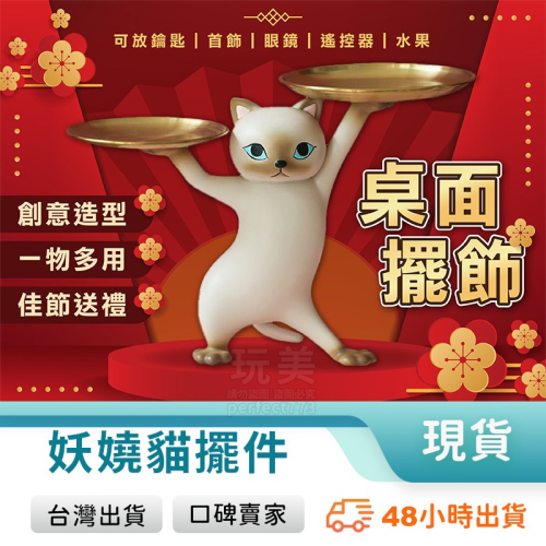 抬棺貓 妖嬈貓 抬手貓 貓咪公仔 大隻公仔 療癒小物 室內擺設 玄關擺設 可放置小物 鑰匙 錢包 玩美 771003
