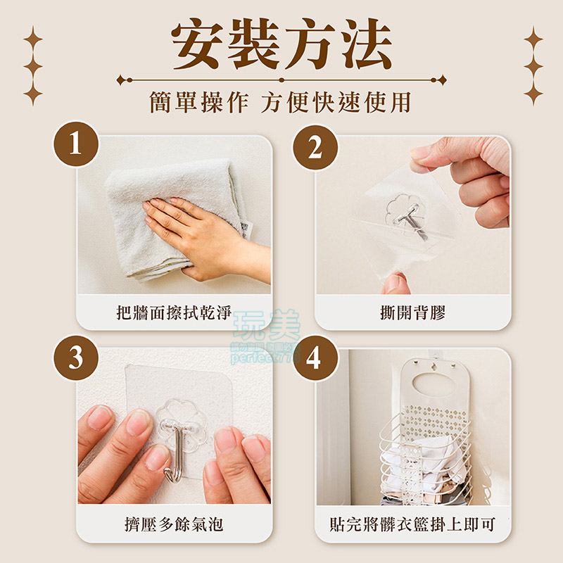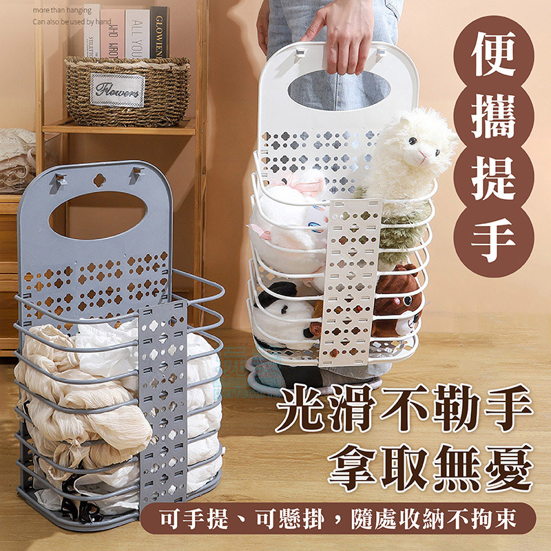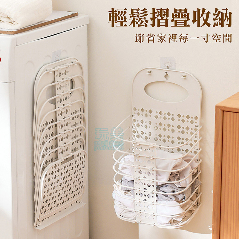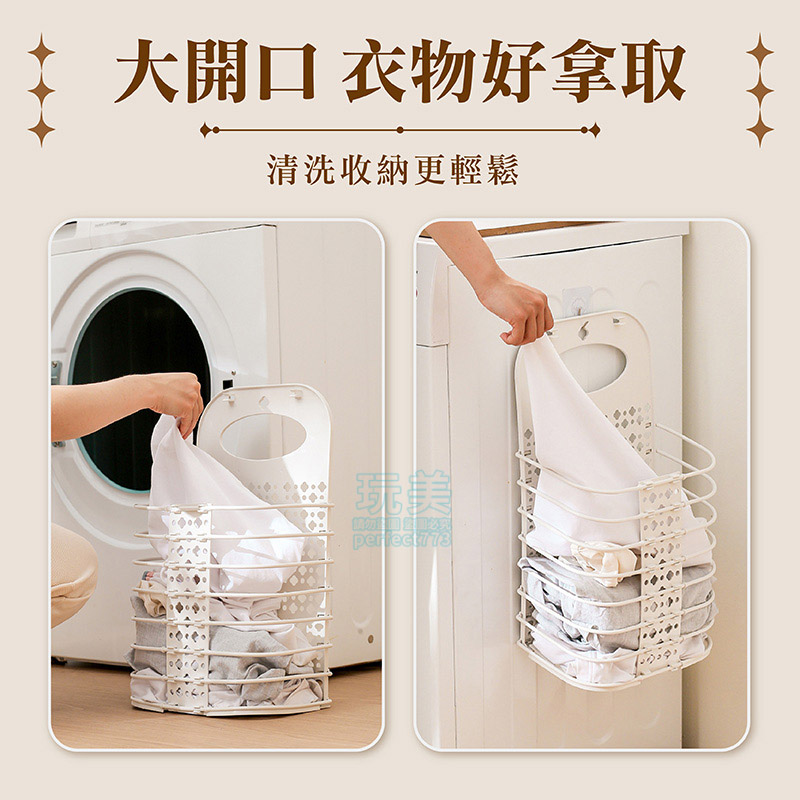 洗衣籃 髒衣籃 衣物收納籃 壁掛洗衣籃 折疊洗衣籃 浴室收納 分類收納 襪子收納 內褲收納 髒衣收納 玩美 77863