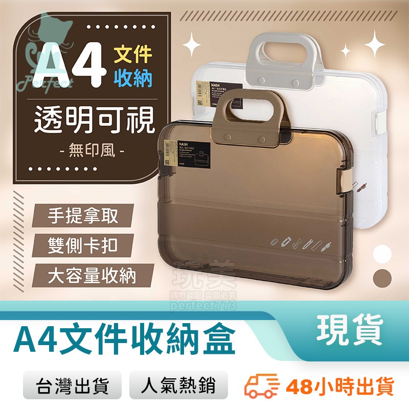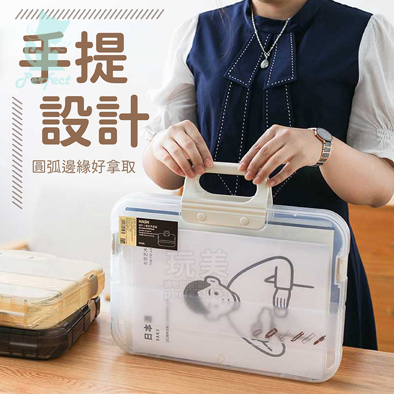 文件資料盒 透明收納盒 A4檔案盒 手提文件盒 收據收納盒 紙張收納 文件收納 試卷收納 玩美 77800