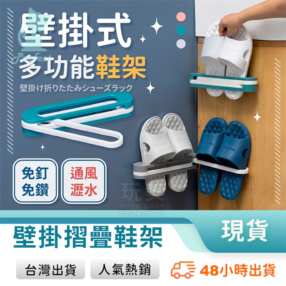 壁掛式鞋架 拖鞋收納架 浴室拖鞋架 多功能壁架 黏貼式鞋架 折疊鞋架 室內鞋架 免打孔鞋架 玩美 77718