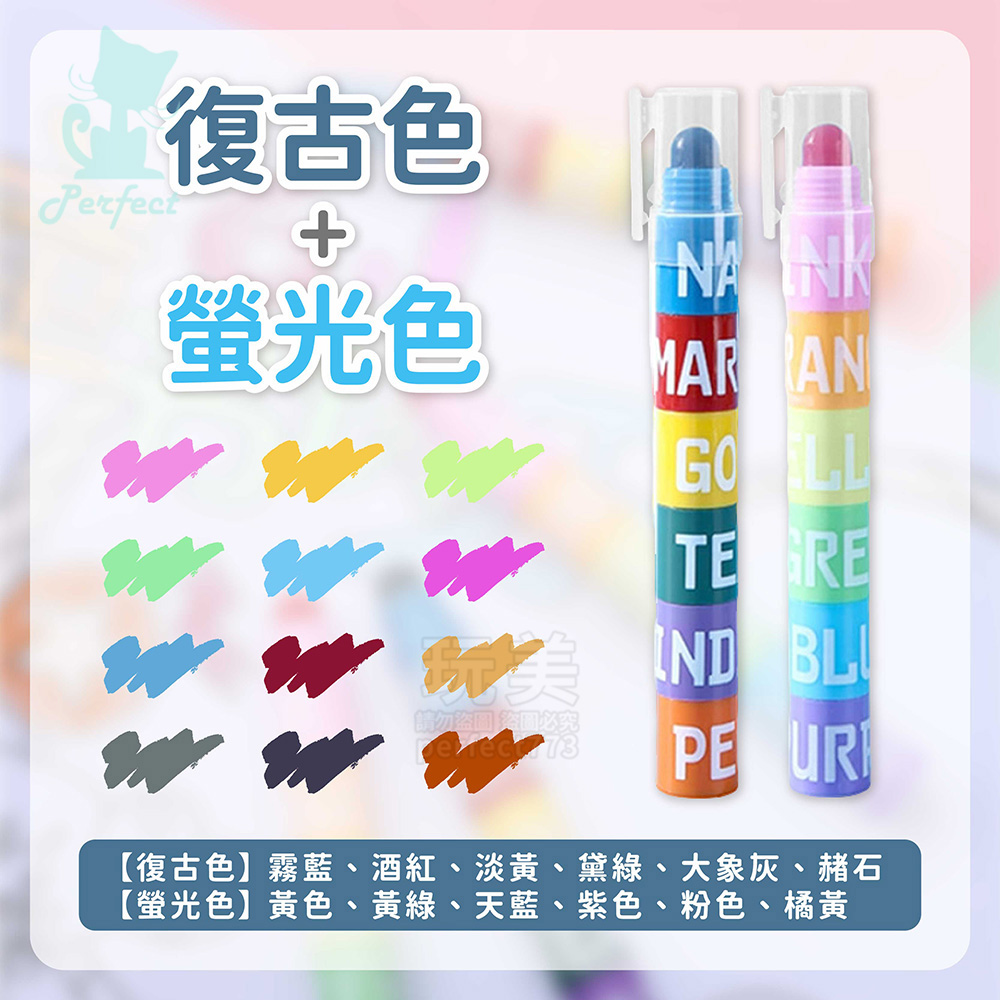 • 12色拼接固體復古色螢光筆 12色拼接固體復古色螢光筆