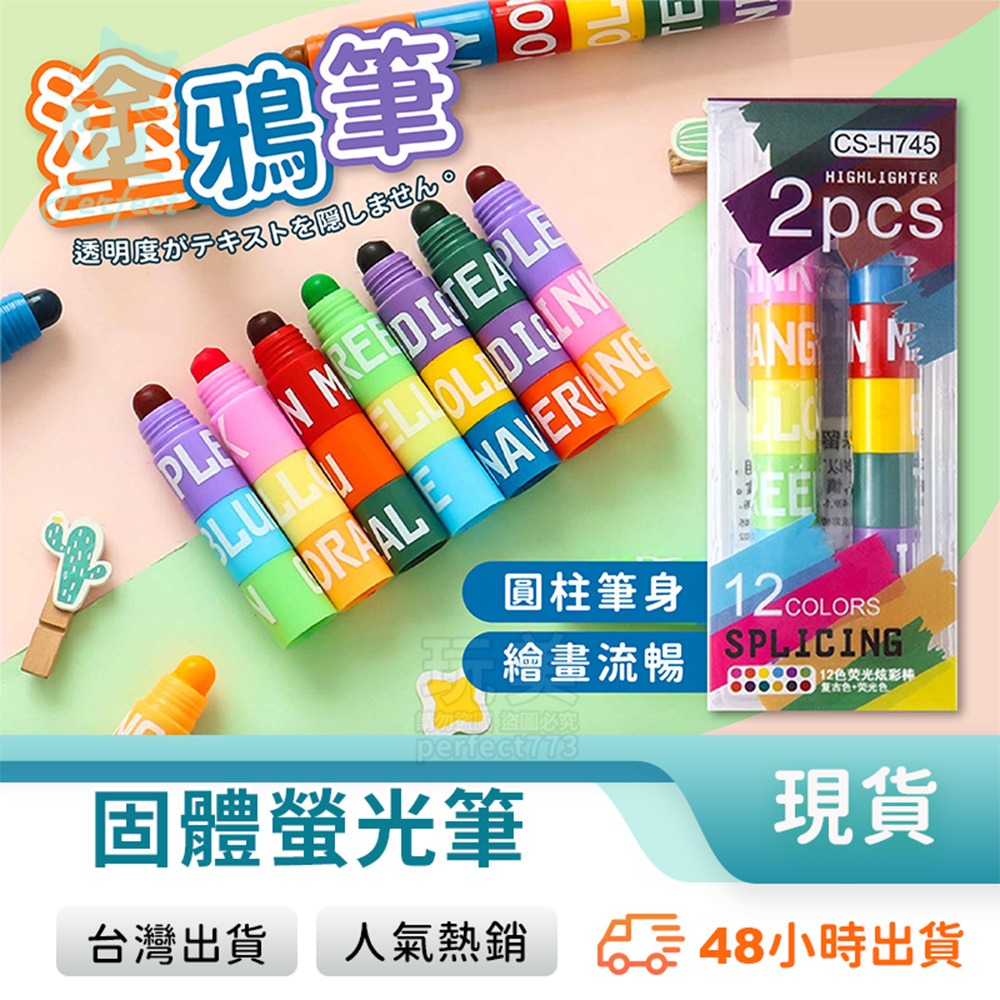 固體螢光筆 螢光蠟筆 彩虹筆 1組2入 12色 胖胖筆 積木蠟筆 兒童蠟筆 兒童文具 兒童禮物 玩美 77805