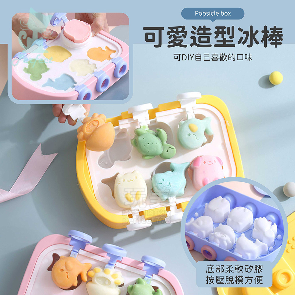 冰棒模具 6格卡通冰棒盒 冰棒模 DIY冰棒 製冰盒 雪糕製冰盒 雪糕模具 自製冰棒 可愛冰棒 動物冰棒 771695